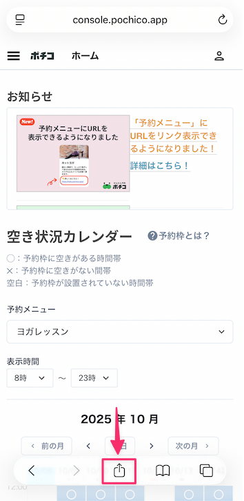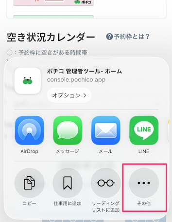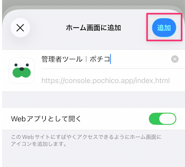- SafariやChromeなどのブラウザでポチコの管理者ツールを開き、下部のボタンをタップする