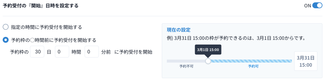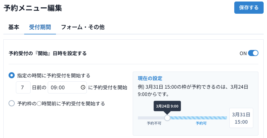 予約受付の『開始』日時を設定する