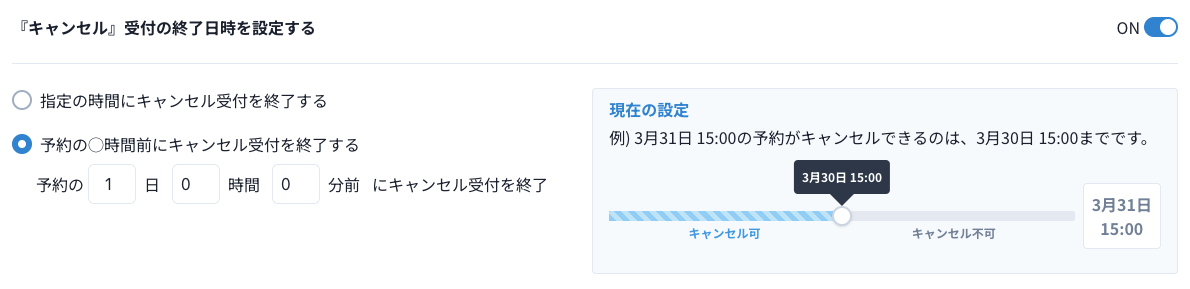 - 指定した時間を過ぎたら、キャンセルを締め切る