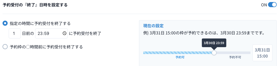 予約受付の『終了』日時を設定する