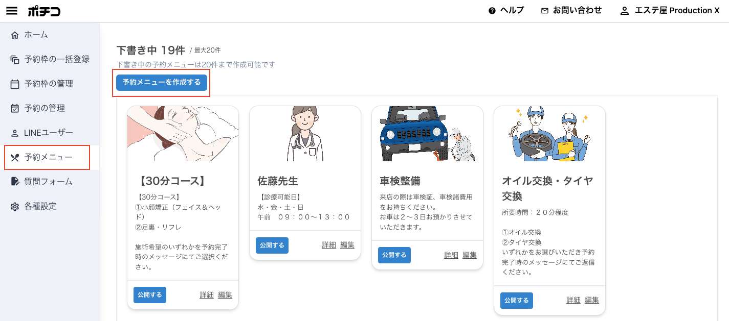 【新規で予約メニューを作成する場合】