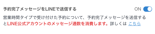 - 「予約完了メッセージをLINEで送信する」をONにする。