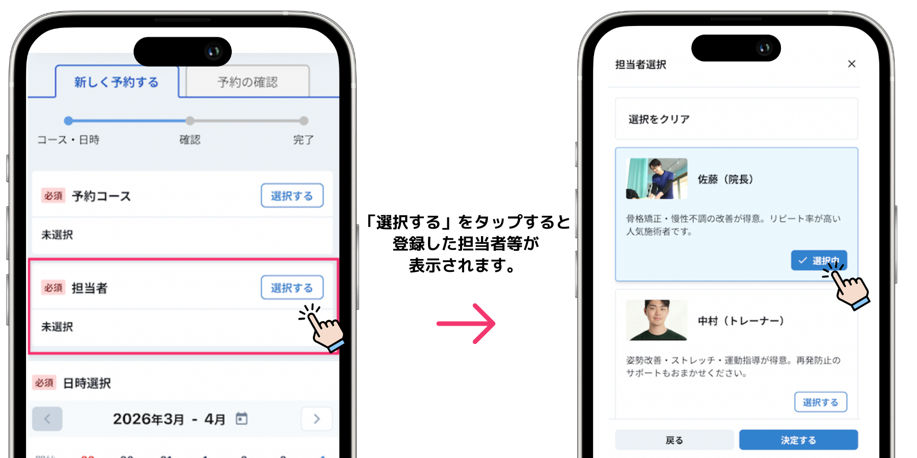 - 人が対応する予約:担当者