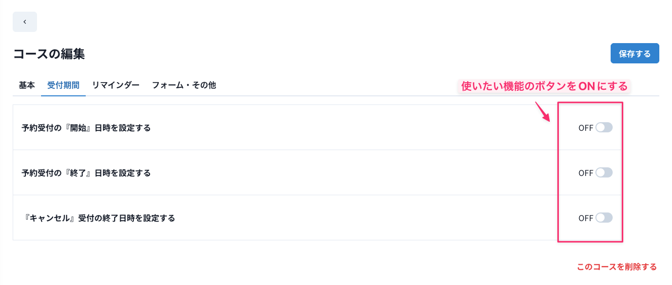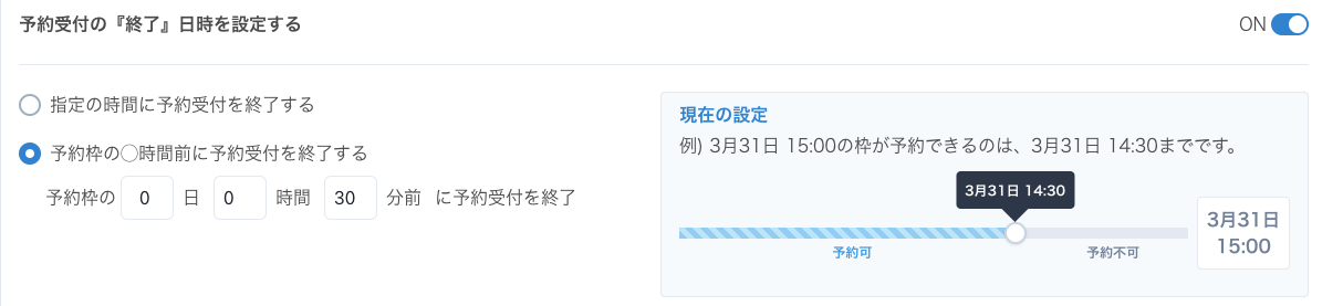 予約受付の『終了』日時を設定する