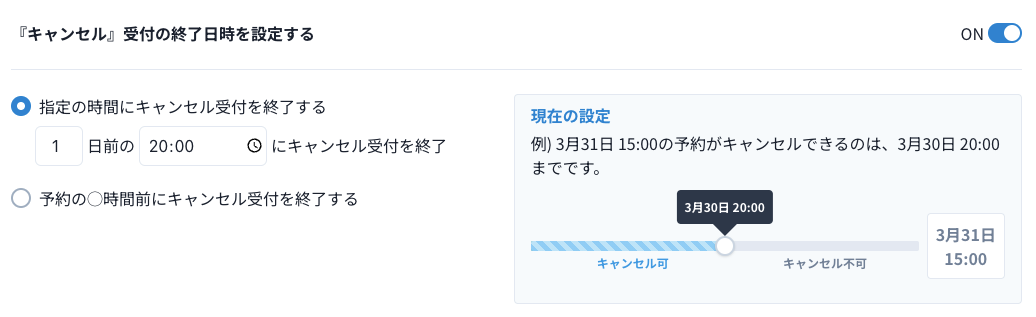 - 指定した時間を過ぎたら、キャンセルを締め切る